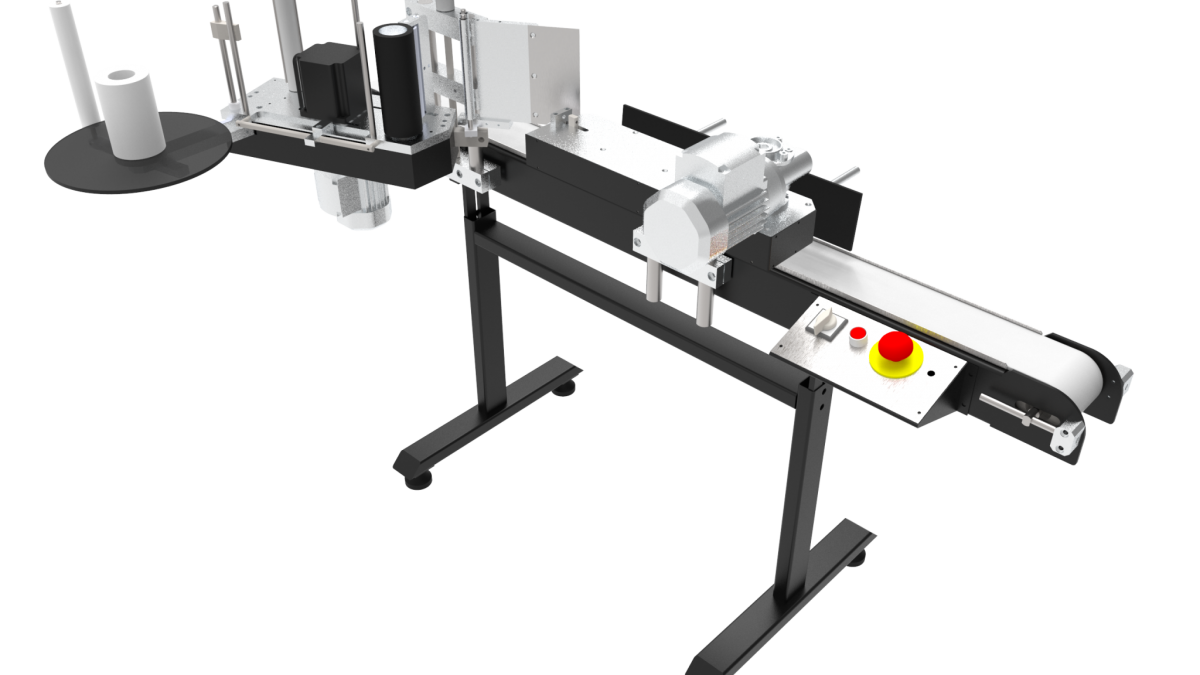 Essa rotuladora possibilita a aplicação de um rotulo por frasco e é recomendada para pequena ou média produção, pode atingir até 40 frascos por minuto dependendo do tamanho do rotulo e do frasco.