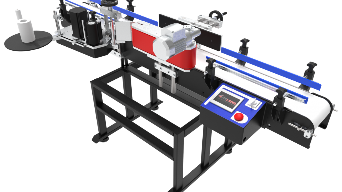 Essa rotuladora possibilita a aplicação de até dois rótulos por frasco (frente e verso) e é recomendada para média ou grande produção, pode atingir até 120 frascos por minuto dependendo do tamanho do rotulo e do frasco.